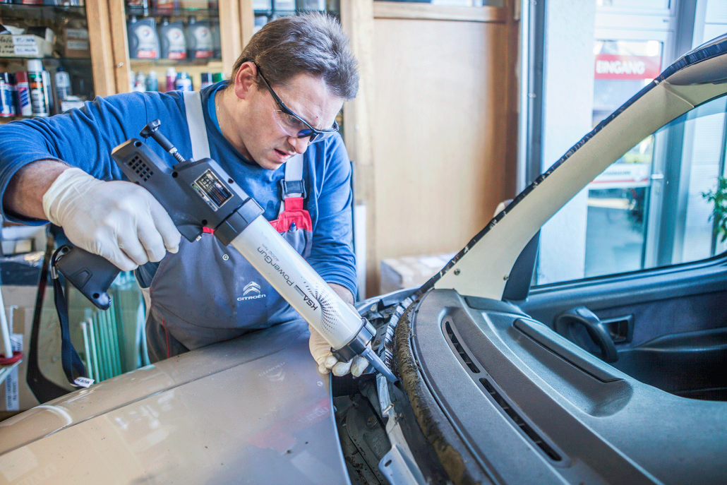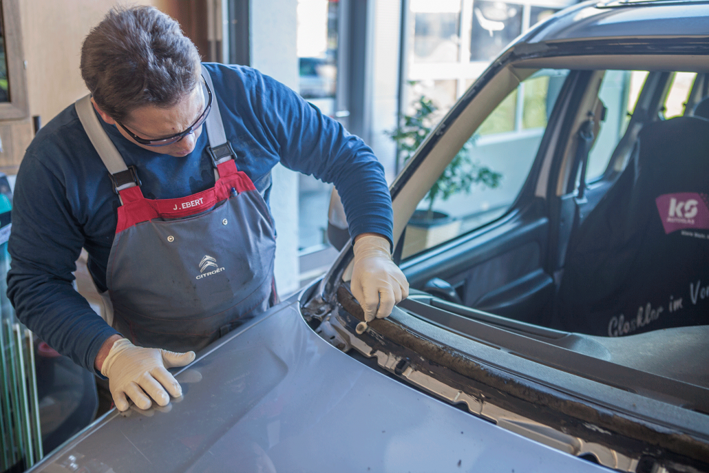 Als zertifizierter KS AUTOGLAS Partner reparieren wir Ihren Steinschlag oder tauschen gegebenenfalls die Windschutzscheibe aus..