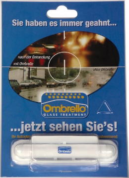 Nach einmaliger Ombrello-Behandlung der Front- sowie der beiden vorderen Türscheiben hält die patentierte Scheibenversiegelung bis zu 10 Monate (6 x länger als vergleichbare Produkte). Studien renommierter Institute haben bewiesen, dass Ombrello die Sicht um 34% verbessert und Ihre Reaktionszeit dadurch in kritischen Verkehrssituationen erheblich verkürzt. Eis und Insektenreste lassen sich nach der Ombrello-Versiegelung leicht entfernen.